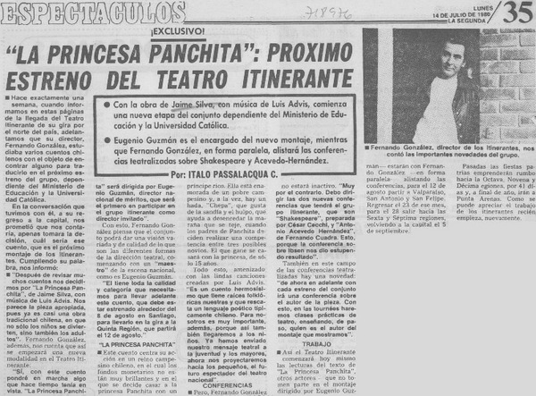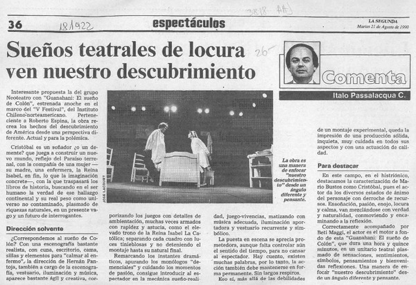 Sueños teatrales de locura ven nuestro descubrimiento [artículo] Italo Passalacqua C.