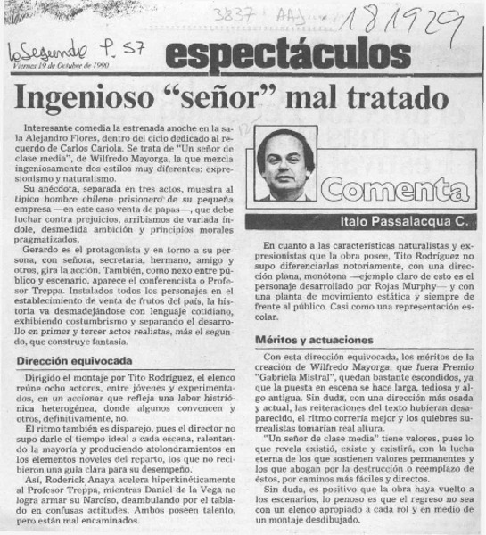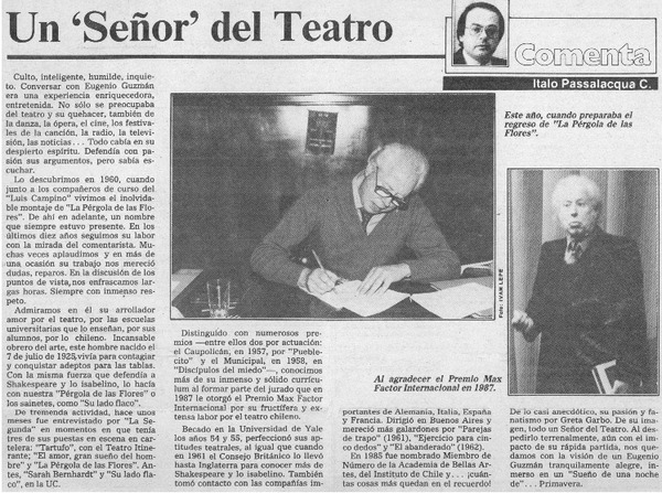 Un "señor" del teatro [artículo] Italo Passalacqua C.