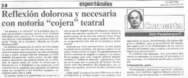Reflexión dolorosa y necesaria con notoria "cojera" teatral [artículo] Italo Passalacqua C.