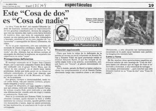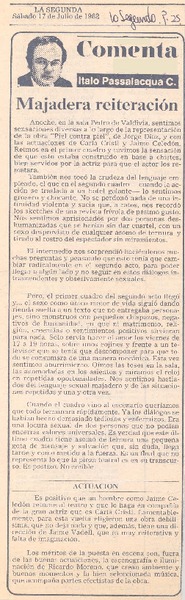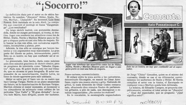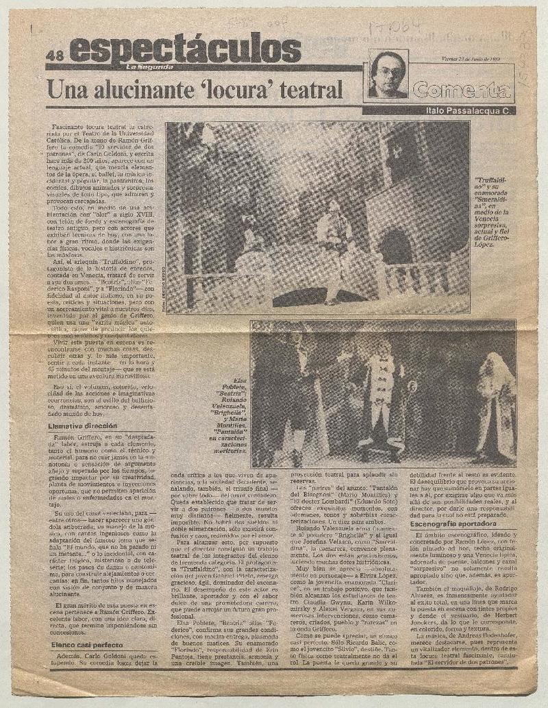 Una alucinante "locura" teatral [artículo] Italo Passalacqua C.
