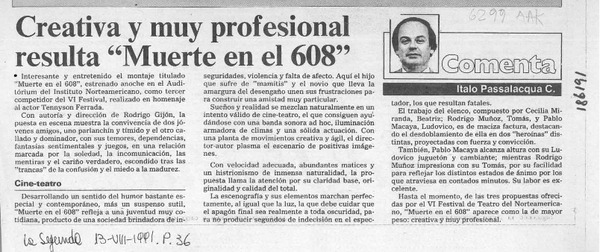Creativa y muy profesional resulta "Muerte en el 608" [artículo] Italo Passalacqua C.