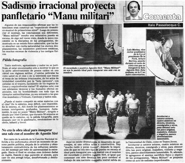 Sadismo irracional proyecta panfletario "Manu militari" [artículo] Italo Passalacqua C.