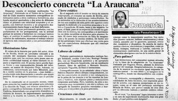 Desconcierto concreta "La Araucana" [artículo] Italo Passalacqua C.