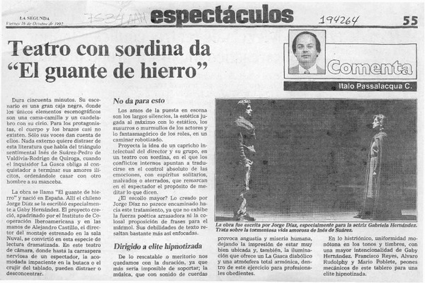 Teatro con sordina da "El guante de hierro" [artículo] I. Passalacqua C.