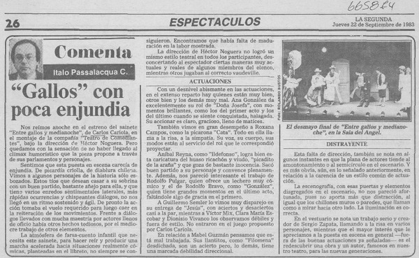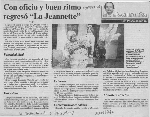 Con oficio y buen ritmo regresó "La Jeannette" [artículo] Italo Passalacqua C.