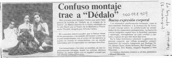 Confuso montaje trae a "Dédalo" [artículo] Italo Passalacqua C.