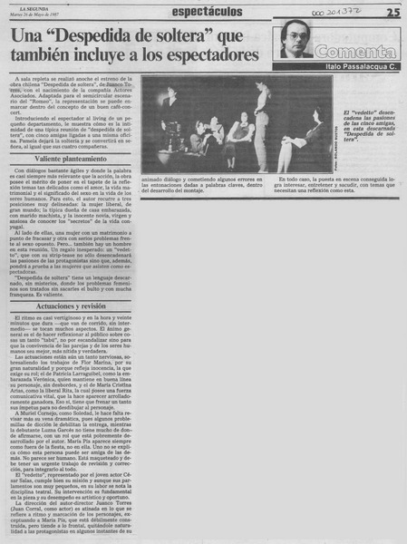 Una "Despedida de soltera" que también incluye a los espectadores [artículo] Italo Passalacqua C.