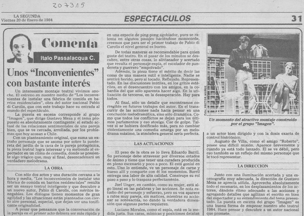 Unos "Inconvenientes" con bastante interés [artículo] Italo Passalacqua C.