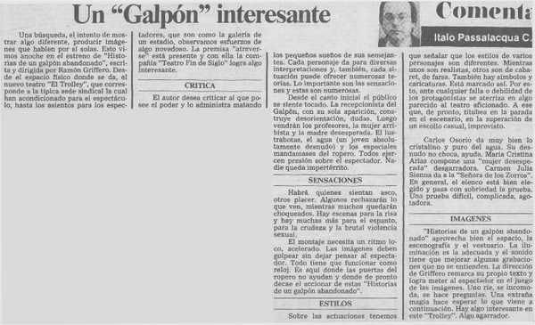 Un "Galpón" interesante [artículo] Italo Passalacqua C.
