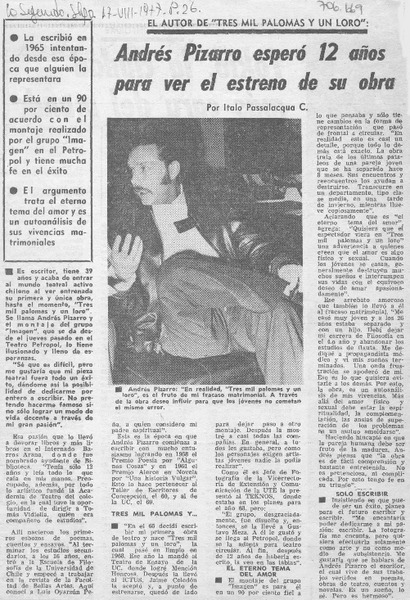 Andrés Pizarro esperó 12 años para ver el estreno de su obra [artículo] Italo Passalacqua C.