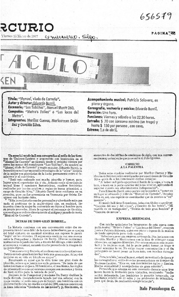 Un "Manuel" rescatador del verdadero café-concert [artículo] Italo Passalacqua C.