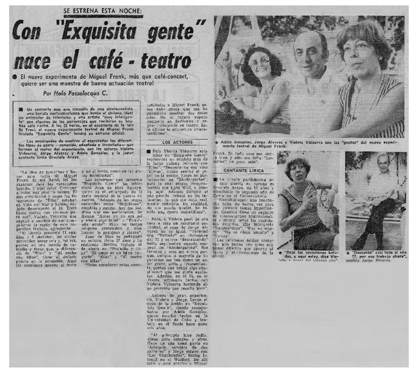 Con "Exquisita gente" nace el café-teatro [artículo] Italo Passalacqua C.