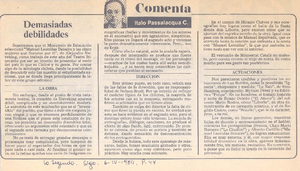 Demasiadas debilidades [artículo] Italo Passalacqua C.
