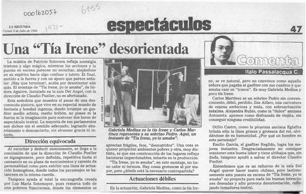 Una "Tía Irene" desorientada [artículo] Italo Passalacqua C.