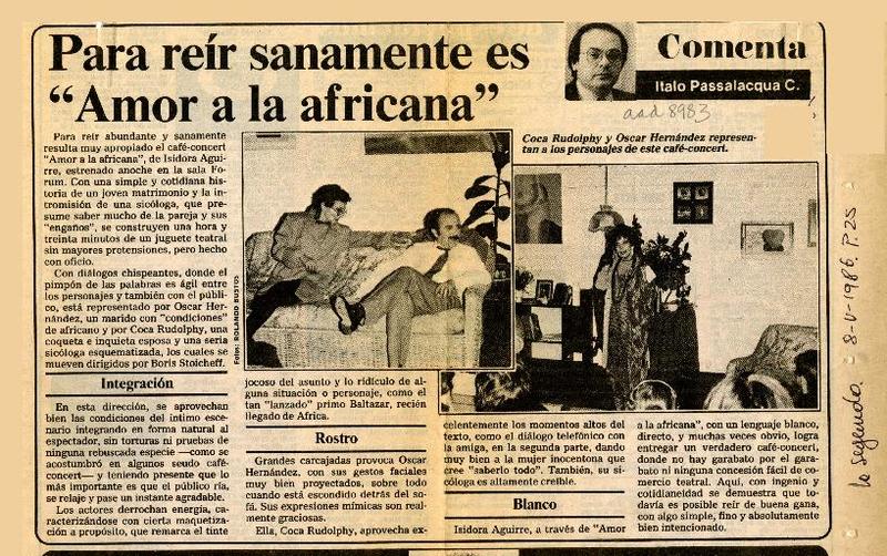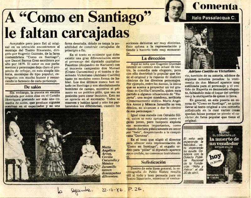 A "Como en Santiago" le faltan carcajadas [artículo] Italo Passalacqua C.