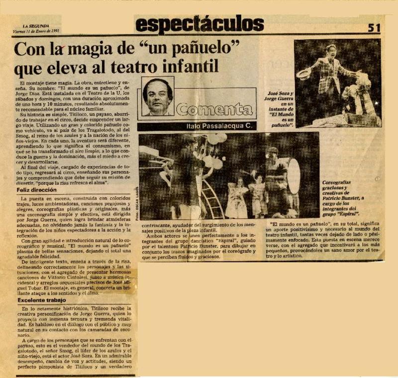 Con la magia de "un pañuelo" que eleva al teatro infantil [artículo] Italo Passalacqua C.