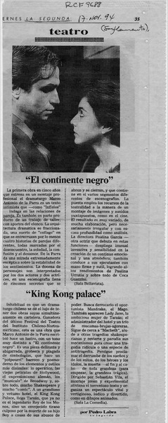 Autores chilenos - El continente negro - King Kong palace - Parra, Marco Antonio de la