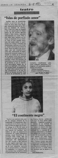 "El Continente negro", historia de amores fragmentados y de promesas rotas [artículo] Javier Ibacache.