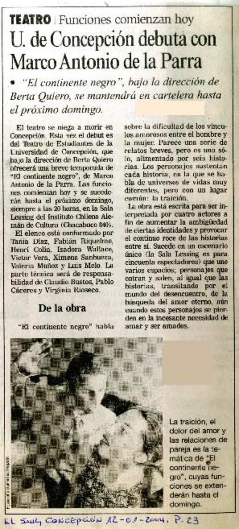 U. de Concepción debuta con Marco Antonio de la Parra [artículo].