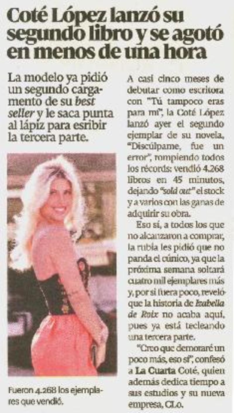 La Coté acabó con vendaje luego de maratón de firmas [entrevista]. [artículo] :