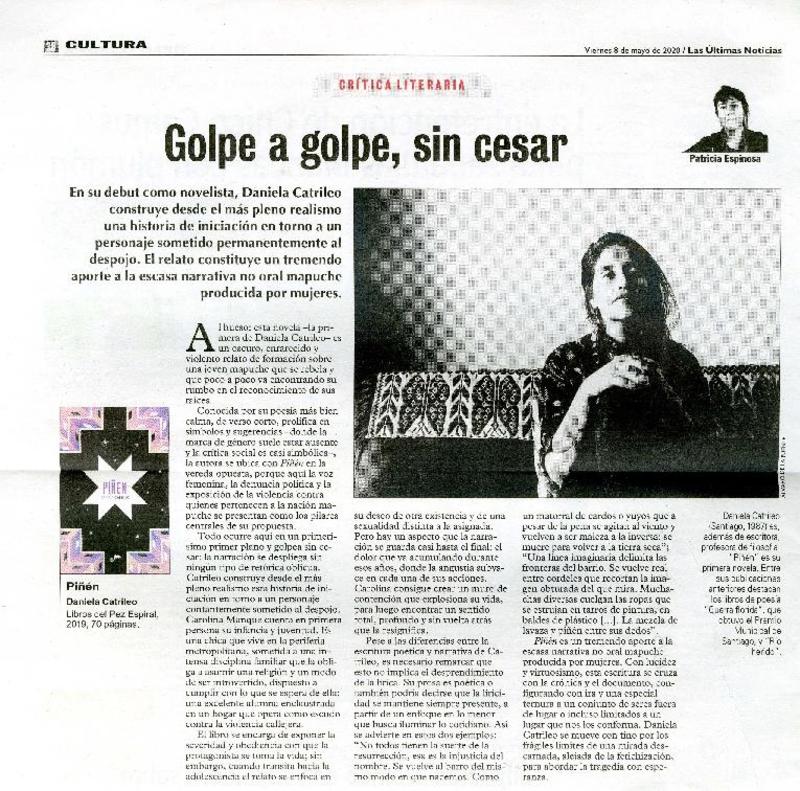 Golpe a golpe, sin cesar [artículo] Patricia Espinosa