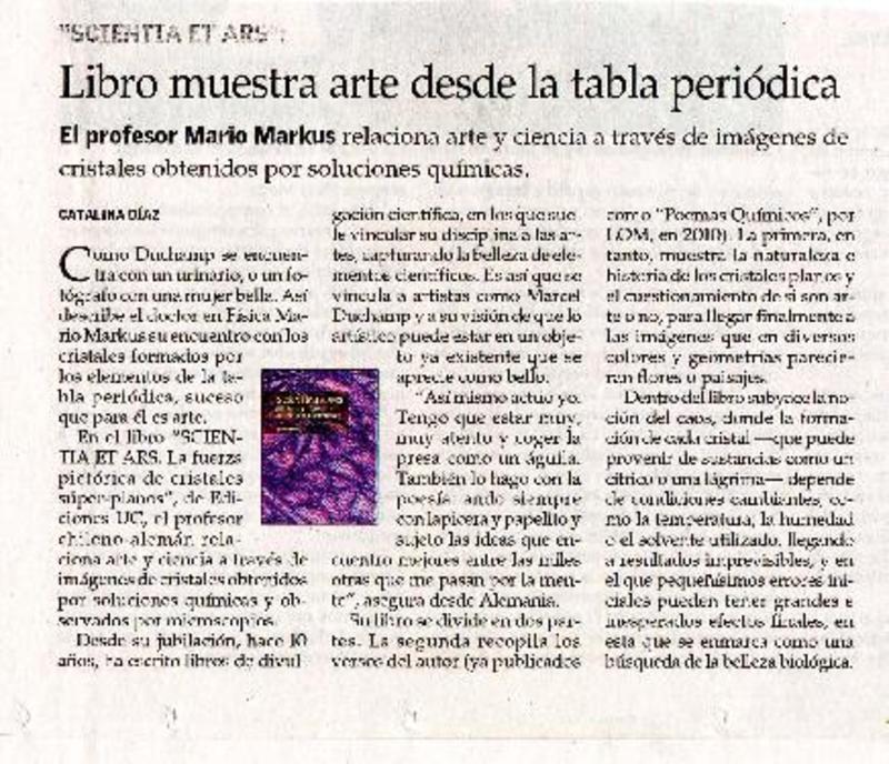 Libro muestra arte desde la tabla periódica [artículo] Catalina Díaz.