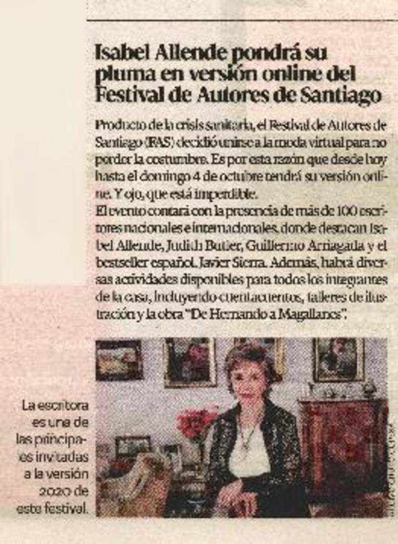 Isabel Allende pondrá su pluma en versión online de autores de Santiago. [artículo]