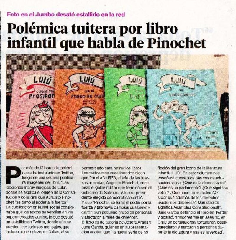 Polémica tuitera por libro infantil que habla de Pinochet. [artículo]