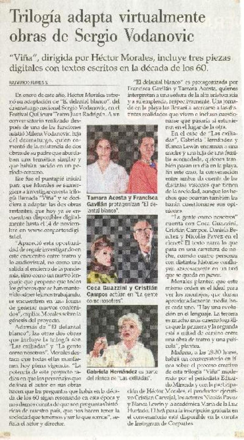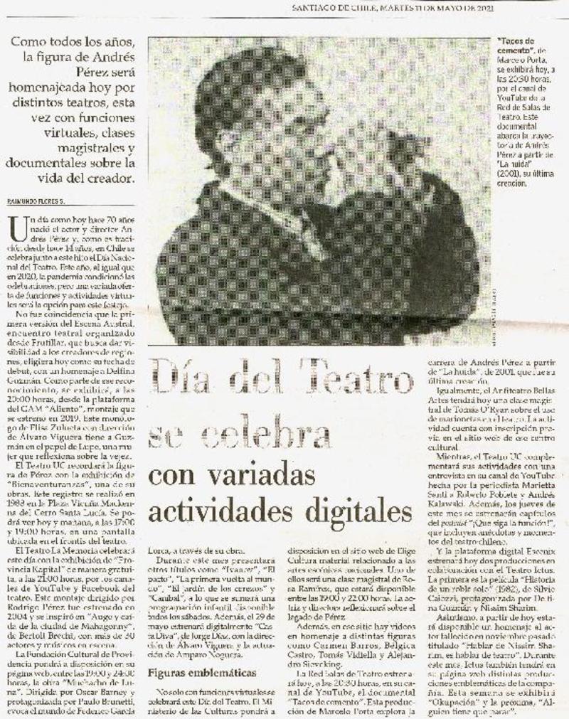 Día del teatro se celebra con variadas actividades digitales [artículo] Raimundo Flores S.