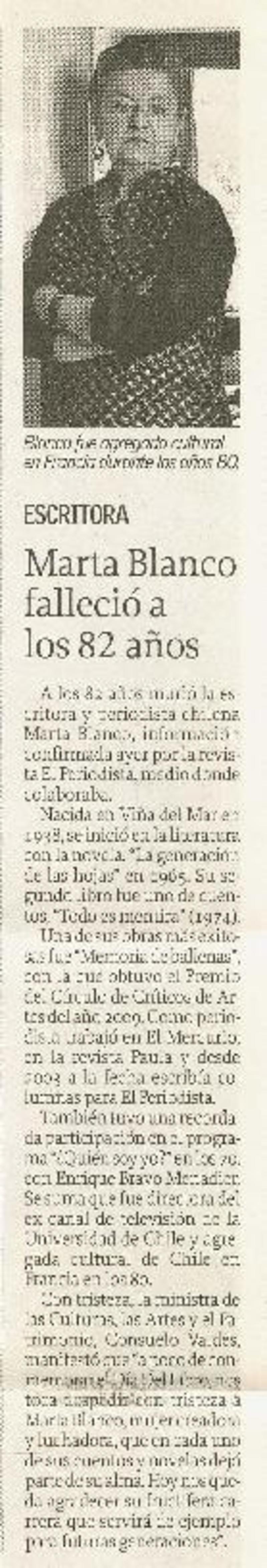 Marta Blanco falleció a los 82 años. [artículo]