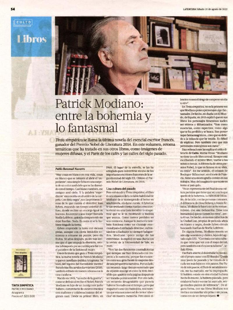 Patrick Modiano entre la bohemia y lo fantasmal [artículo] : Pablo Retamal Navarro.