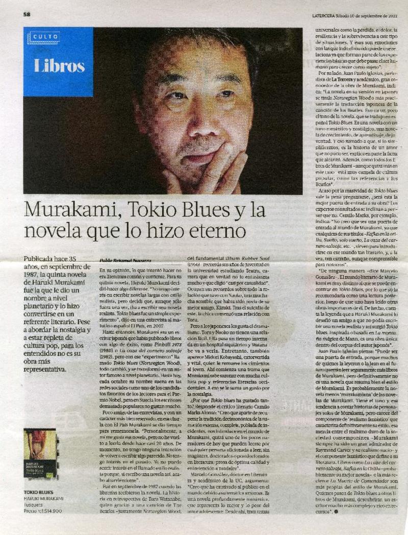 Murakami, Tokio Blues y la novela que lo hizo eterno [artículo] Pablo Retamal Navarro.