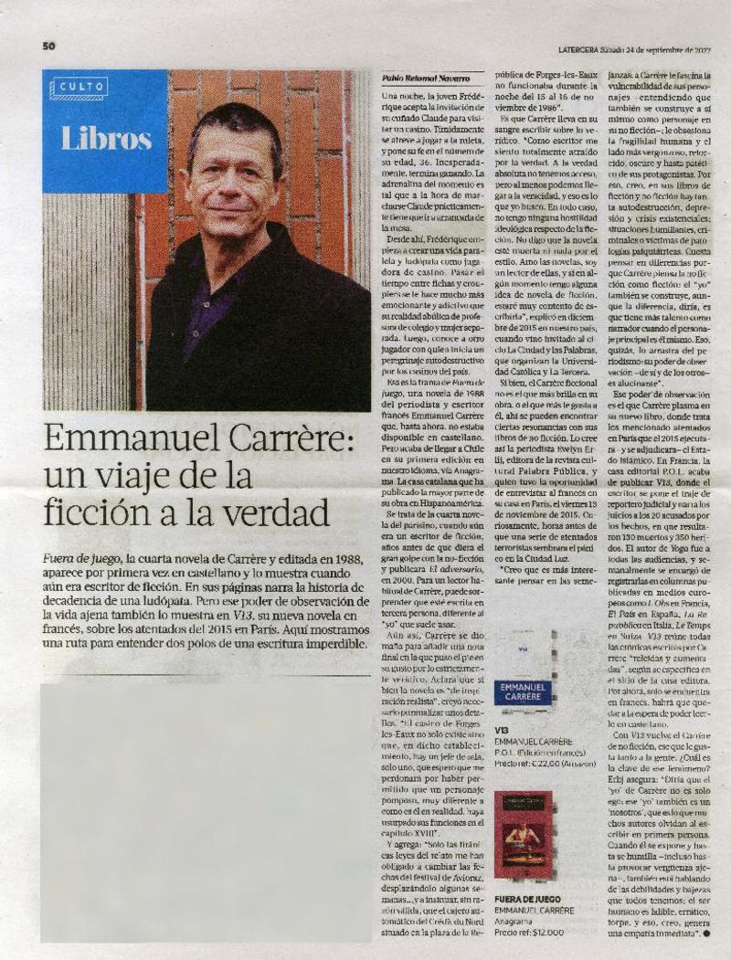 Emmanuel Carrère: un viaje de la ficción a la verdad [artículo] Pablo Retamal Navarro.