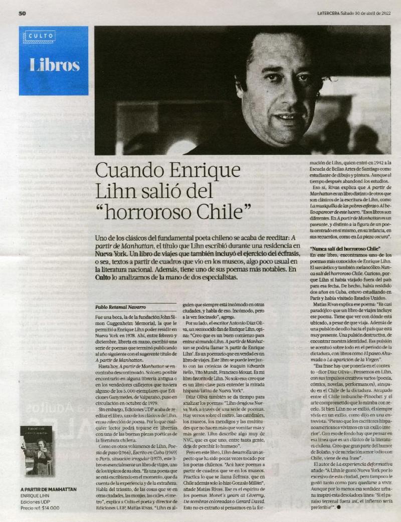 Cuando Enrique Lihn salió del "horroroso Chile" [artículo] Pablo Retamal Navarro.