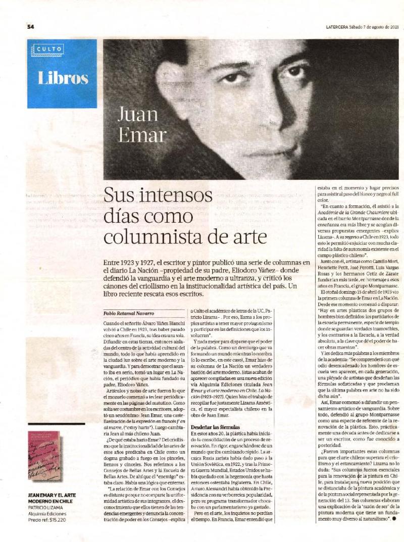 Juan Emar Sus intensos días como columnista de arte [artículo] : Pablo Retamal Navarro.