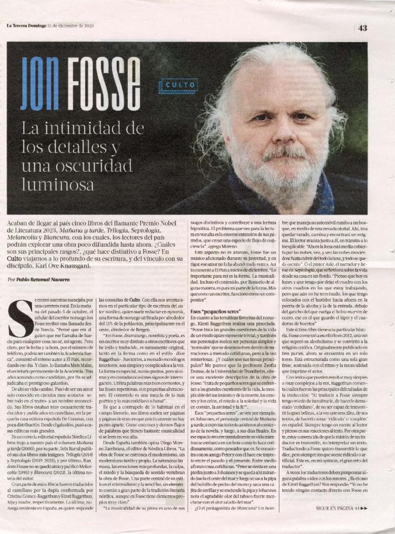 Jon Fosse La intimidad de los detalles y una oscuridad luminosa [artículo] Pablo Retamal Navarro.