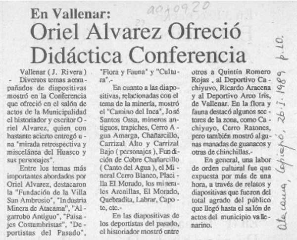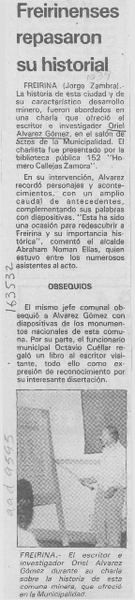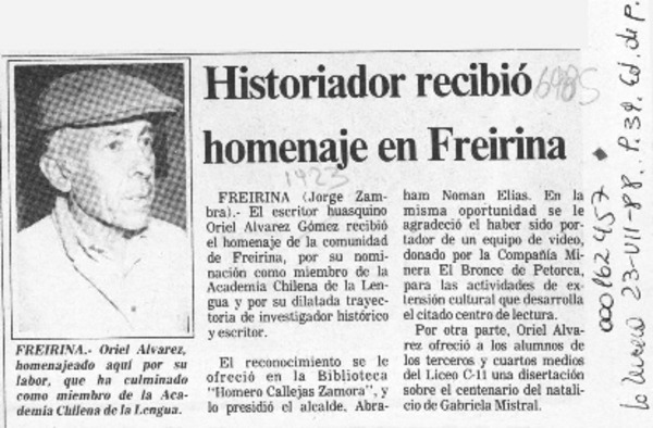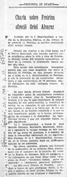 Charla sobre Freirina ofreció Oriel Alvarez. [artículo]