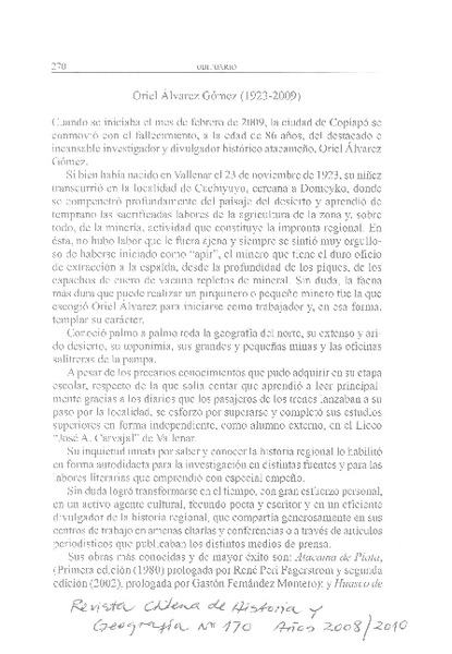 Oriel Álvarez Gómez (1923-2009) [artículo] G. F. M.