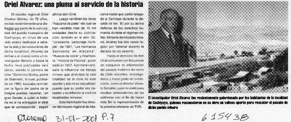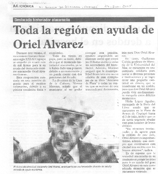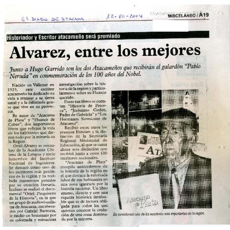Homenaje para historiador Alvarez en la III Región [artículo].