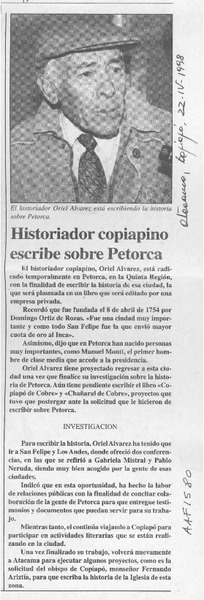 Historiador copiapino escribe sobre Petorca [artículo].
