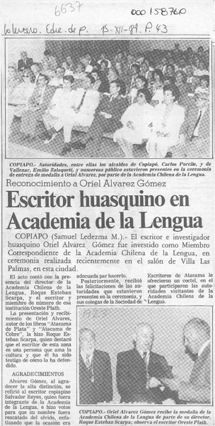 Escritor huasquino en Academia de la Lengua [artículo] Samuel Ledezma M.