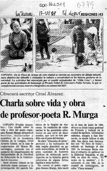 Charla sobre vida y obra de profesor-poeta R. Murga [artículo] Freddy Arancibia.