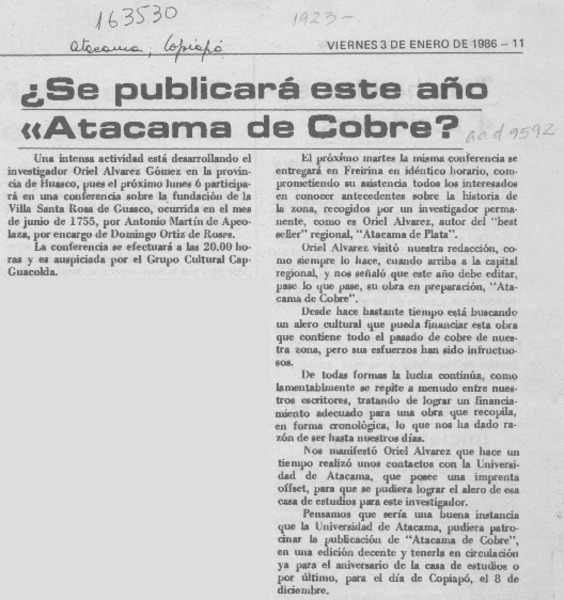 Se publicará este año "Atacama de cobre"? [artículo].