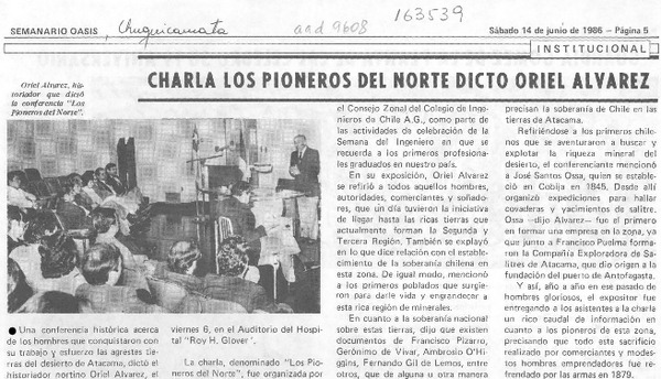 Charla "Los pioneros del Norte" dictó Oriel Alvarez [artículo].