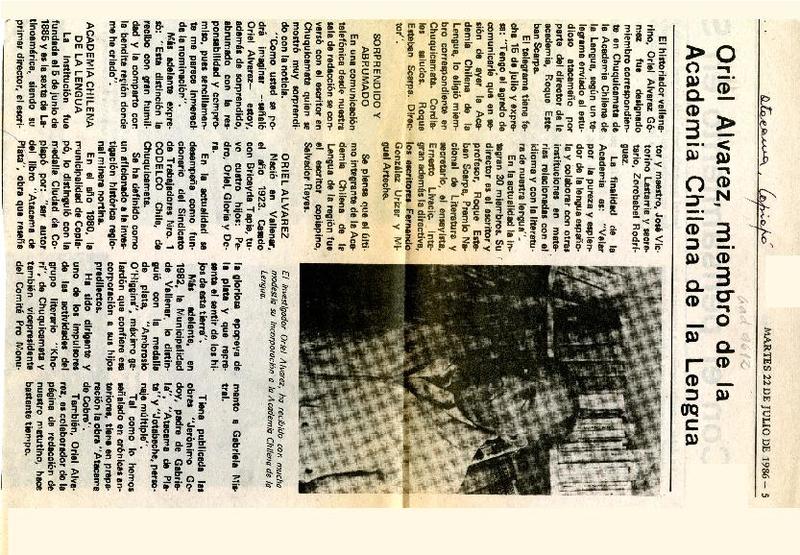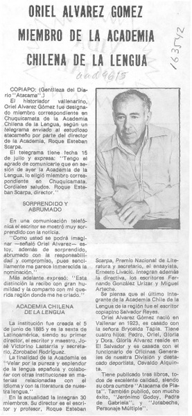 Oriel Alvarez Gómez miembro de la Academia Chilena de la Lengua [artículo].