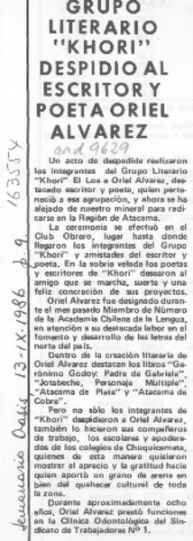 Grupo literario "Khori" despidió al escritor y poeta Oriel Alvarez [artículo].