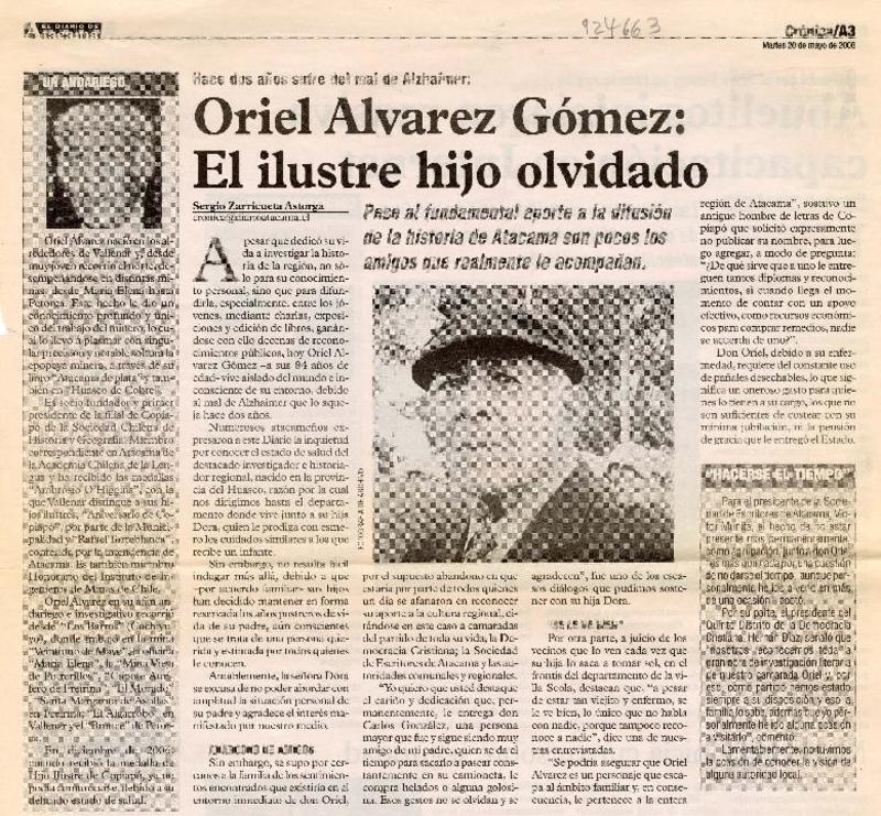 Oriel Alvarez Gómez: El ilustre hijo olvidado [artículo]Sergio Zarricueta Astorga.