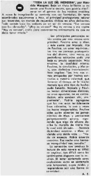 Autores chilenos - Wacquez, Mauricio - Toda la luz del mediodía