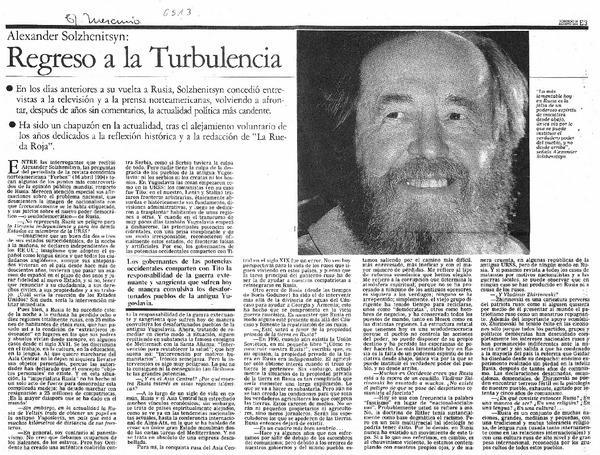Solhenitsyn : el buen hijo vuelve a casa [artículo] Paul Klevnikov.