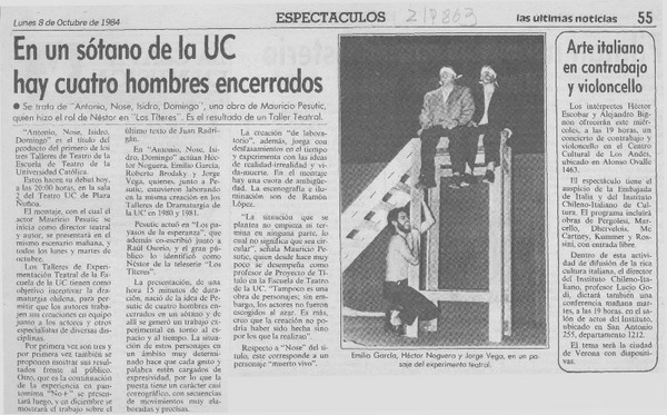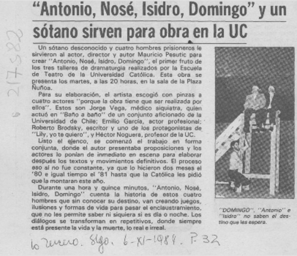 "Antonio, Nosé, Isidro, Domingo" y un sótano sirven para obra en la UC [artículo].